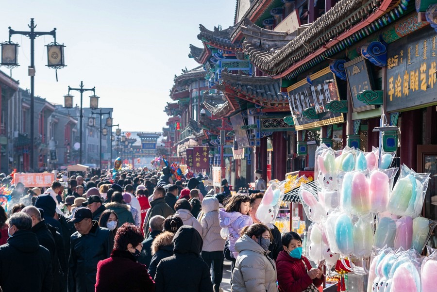 2024年2月15日,人們?cè)诤艉秃铺厥杏袢獏^(qū)塞上老街旅游休閑街區(qū)游玩。丁根厚 攝