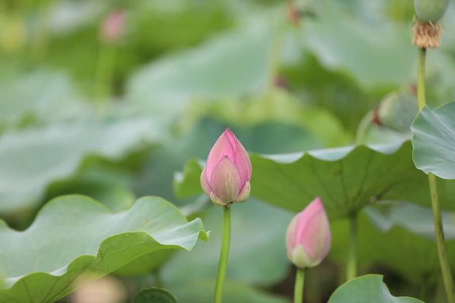 8月10日,內(nèi)蒙古烏海人民公園內(nèi)的荷花待開放。