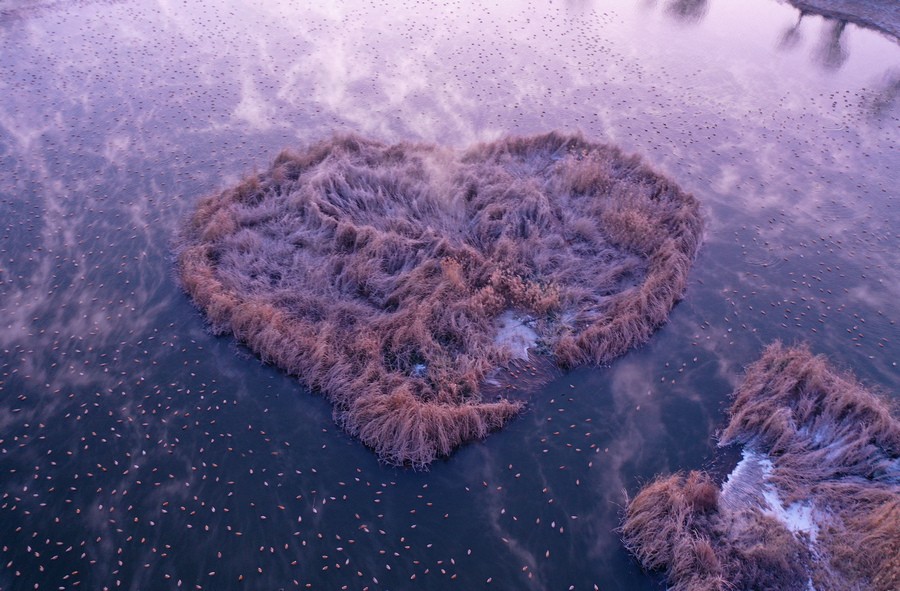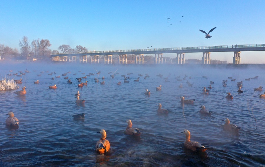 12月15日,上萬只赤麻鴨在塞外“千島湖”棲息
