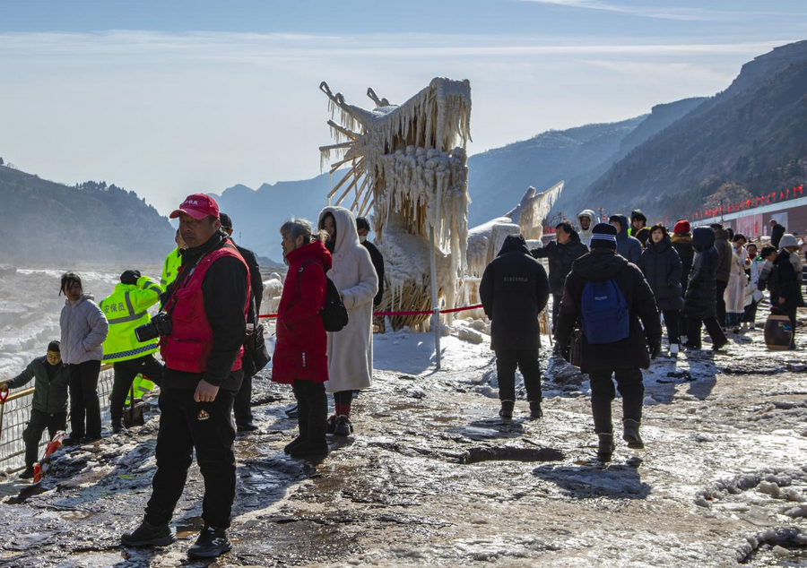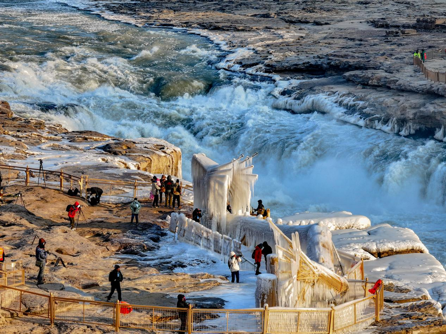壺口瀑布現(xiàn)冰瀑玉壺奇觀
