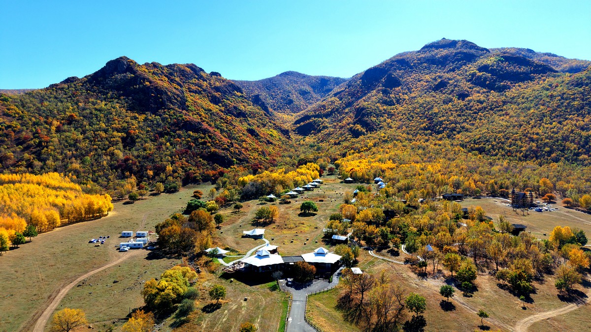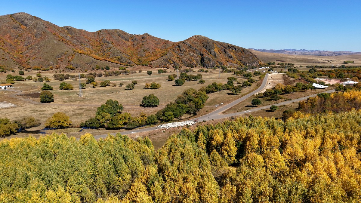 黑羊山旅游度假區(qū),海拔1319米,因這里的山形似黑羊頭得名。金秋時(shí)節(jié),整個(gè)景區(qū)被一片五彩斑斕的世界所籠罩,藍(lán)天、白云、溪流、牛羊群構(gòu)成一幅醉人的畫卷,恍若進(jìn)入童話世界。
