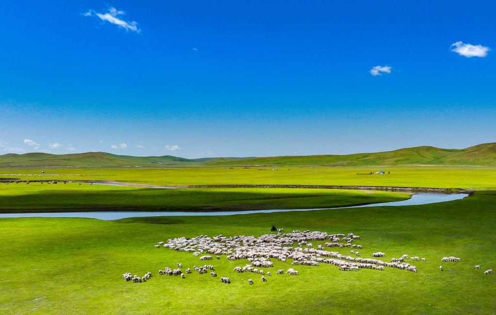 以上圖片:2025年7月13日在內(nèi)蒙古自治區(qū)呼倫貝爾市陳巴爾虎旗境內(nèi)拍攝的莫爾格勒河風(fēng)光。(無人機(jī)照片)CICPHOTO/王正