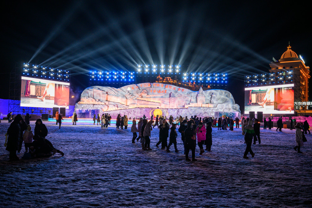 據(jù)了解,本屆冰雪節(jié)打造的《冰雪芳華》主題樂園占地12萬余平方米,以“歲月回響·口岸記憶·共赴未來”為脈絡(luò),串聯(lián)六大篇章完整復(fù)刻滿洲里從邊陲驛站到國際口岸的百年變遷。園區(qū)主雕塑“冰雪絲路·三國同心”與主舞臺“三國同心·冰雪同夢”融合三國經(jīng)典建筑元素,成為文化互鑒的視覺核心。十余項(xiàng)娛樂項(xiàng)目免費(fèi)開放,14處商品銷售及餐飲業(yè)態(tài)暖心上線,全方位滿足全齡段游客游玩需求。