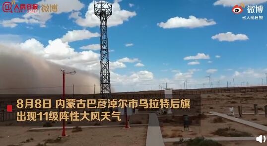 8月8日16時(shí)12分至16時(shí)23分,內(nèi)蒙古自治區(qū)巴彥淖爾市烏拉特后旗獲各琦蘇木海力素國(guó)家基準(zhǔn)氣候站出現(xiàn)11級(jí)陣性大風(fēng)天氣,最大瞬時(shí)風(fēng)速28.5m/s,達(dá)到11級(jí),海力素最小能見(jiàn)度192米,出現(xiàn)強(qiáng)沙塵暴天氣。(張棖 王衛(wèi)東)