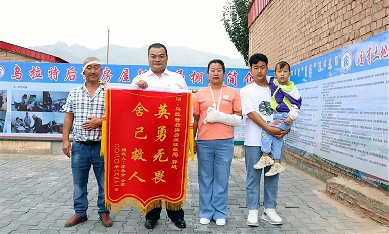 “太謝謝你了,你是我們一家四口的救命恩人,我們一輩子都會感激你。”眼中飽含熱淚的李永全緊緊握著郭進(jìn)的手說。8月21日一大早,李永全一家就趕到了郭進(jìn)的工作單位后旗房屋征收局,將一面寫有“英勇無畏舍己救人”的錦旗,送到了恩人郭進(jìn)的手中。