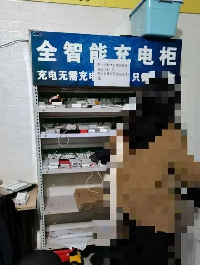 在李紅所提供的經(jīng)營性站點充電柜的照片中,記者看到,五層的充電柜里,上面三層密密麻麻擺放著各種充電寶及手機,在充電柜頂部貼有“全智能充電柜”字樣。