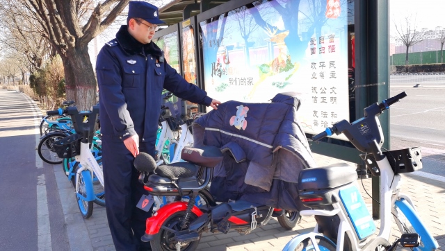 民警在公交車(chē)站牌附近實(shí)地調(diào)查走訪