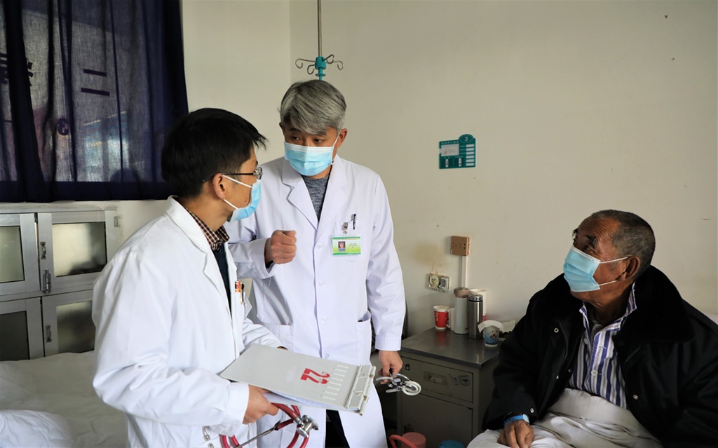 從2018年起,天津市10家醫(yī)院對甘肅省甘南藏族自治州人民醫(yī)院展開“組團(tuán)式”+“院包科式”幫扶。專家們通過科內(nèi)講課、檢查示范、手術(shù)示教等方式,向當(dāng)?shù)蒯t(yī)護(hù)人員傳授臨床經(jīng)驗(yàn)與專業(yè)技能。在東西部扶貧協(xié)作機(jī)制下,天津已累計(jì)選派99位醫(yī)學(xué)專家到甘南州人民醫(yī)院開展對口幫扶。新華社記者 張睿 攝