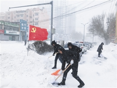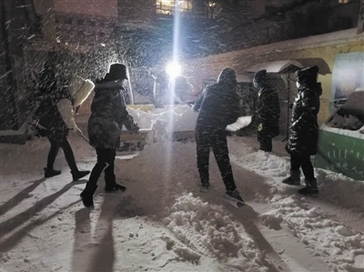 鐵路街道轄區(qū),12輛小鏟車、4輛大鏟車的發(fā)動機滾燙,全體街居干部、物業(yè)公司、保潔大隊,派出所和交警大隊等部門人員幾十人凍得手腳發(fā)麻也沒有放下手中的雪鏟,暴風(fēng)雪中,他們第一時間守在清雪保暢通的前沿陣地,“我們的目標(biāo)是‘雪停路凈’,一定要保障好群眾的安全出行。”