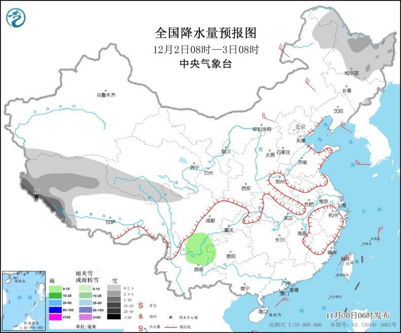 全國降水量預(yù)報圖(11月30日08時-12月1日08時) 來源:中央氣象臺網(wǎng)站
