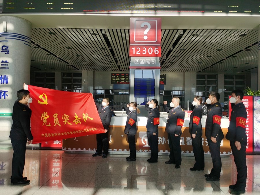 1月17日,春運(yùn)首日,集寧站烏蘭察布站組織黨員突擊隊(duì)開(kāi)展宣誓活動(dòng)。