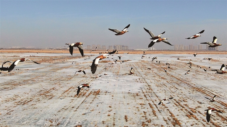 每年3—4月份,大批候鳥(niǎo)從南方來(lái)到鄂爾多斯市境內(nèi)黃河濕地上,之后繼續(xù)向北遷飛。近幾年,隨著生態(tài)環(huán)境不斷改善,候鳥(niǎo)數(shù)量與種類(lèi)逐年增加。圖為達(dá)拉特旗境內(nèi),遷徙候鳥(niǎo)正在棲息覓食。(楊耀中)