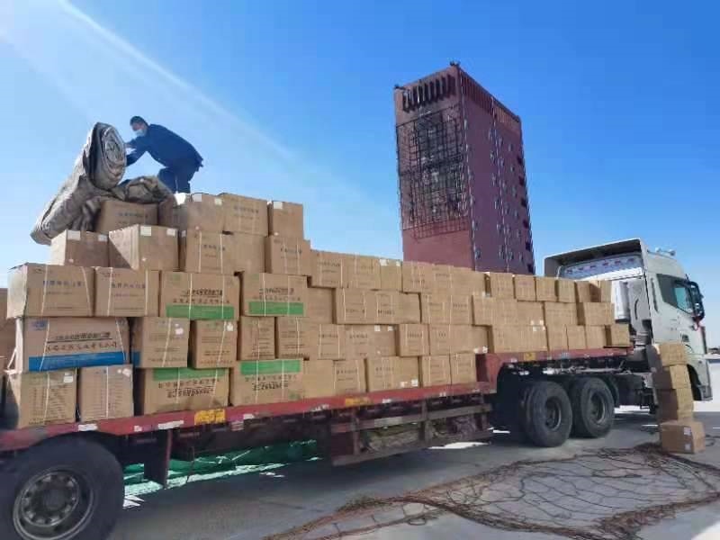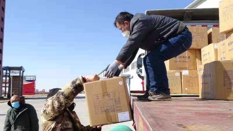 3月1日清晨,錫林郭勒盟至呼和浩特的后山地區(qū)飄著小雪,氣溫在零下10度以下,但是,風(fēng)雪擋不住來(lái)自錫林郭勒大草原的一片片愛。一輛17米帶掛卡車長(zhǎng)驅(qū)千里十多小時(shí),帶著錫林郭勒大草原的問(wèn)候,連夜運(yùn)輸?shù)胶艉秃铺?,只為早點(diǎn)送達(dá)100萬(wàn)只一次性醫(yī)用外科口罩。這輛卡車上掛著內(nèi)容為“祝青城人民早日戰(zhàn)勝疫情,錫盟公益助力呼和浩特市”和“洶洶疫情不可怕,齊心協(xié)力戰(zhàn)勝它”的條幅,表達(dá)“中國(guó)馬都”向“中國(guó)乳都”的真切問(wèn)候。
