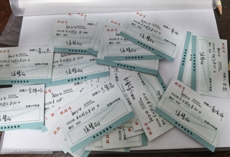6月20日,呼和浩特市第五中學(xué)初三(4)班班主任侯慧敏老師給班里57名學(xué)生的手寫“告別信”刷屏朋友圈,紙短情長,愛意滿滿。每封信箋做成車票的樣式,正面寫著車次:“挑戰(zhàn)號”G2022;時間:2022年6月25日8時30分;座位:至尊VIP專座;票價:無價?!敖K點站”并未填寫。侯慧敏說,那是孩子們的夢想,需要靠他們自己來完成。當天的畢業(yè)班會上,當每個學(xué)生打開信箋,滿滿的回憶和濃濃的情誼不禁讓孩子們潸然淚下。