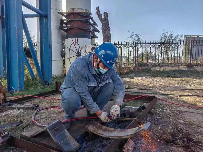 設(shè)備部檢修人員在檢查中發(fā)現(xiàn)供熱管道有三處堵板輕微變形,這會給今冬的安全穩(wěn)定供熱帶來極大隱患,必須馬上加固處理,對法蘭及螺栓進(jìn)行全部焊接。焊接工作量很大,時間又緊,設(shè)備部馬上抽調(diào)4名焊工組成“焊接小分隊(duì)”加班加點(diǎn)展開搶修。氣溫已降到個位數(shù),寒風(fēng)中點(diǎn)點(diǎn)焊光閃耀,他們只想趕緊保質(zhì)保量的完成任務(wù),顧不上寒風(fēng)刺骨。設(shè)備黨支部書記安正平帶領(lǐng)支委和黨員成立了黨員突擊隊(duì)及時支援,解決了熱網(wǎng)檢修現(xiàn)場人員和技術(shù)力量不足的困境。