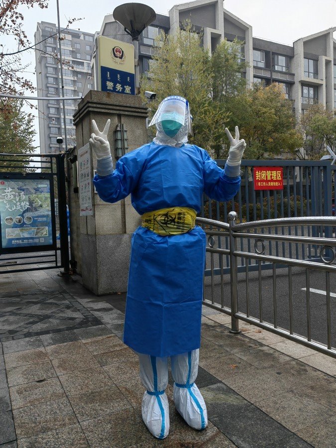 呼和浩特的深秋,夜涼如水,脫去防護(hù)服的她來(lái)不及換上厚衣服,她只好將未使用的垃圾袋披在身上保暖。