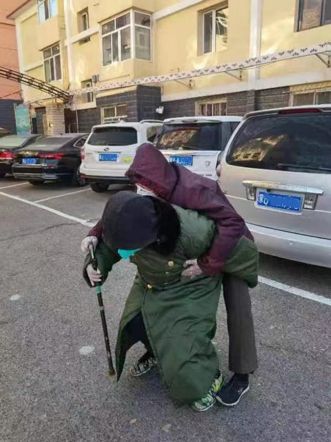 “還有一個老太太,剛做完手術(shù)時間不長,走路很慢,我就過去背上老人家去采集核酸。”張偉說,“不光張書府老人,我現(xiàn)在照顧著好幾個老人,都給他們留了電話,這些老人想吃什么菜了,會寫個單子聯(lián)系我,我會去給他們買回來。在這個小區(qū)里,有太多這樣的老人了,我們會盡自己所能,幫一個是一個?!?/p>