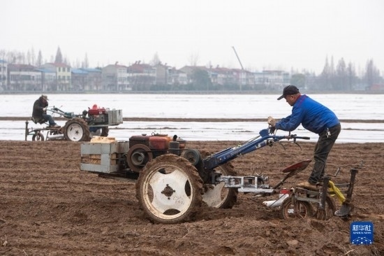 初春時節(jié),湖北省各地農(nóng)民搶抓農(nóng)時,翻整田地,播種施肥,呈現(xiàn)一派繁忙景象。