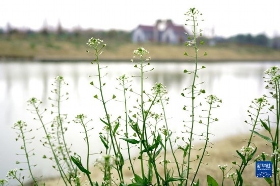 2月19日在上海松江區(qū)北泖涇河畔拍攝的薺菜花。