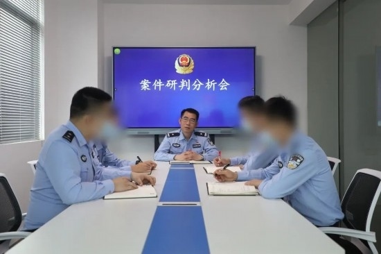 圖為黃日和同事召開案件研判分析會(huì)。