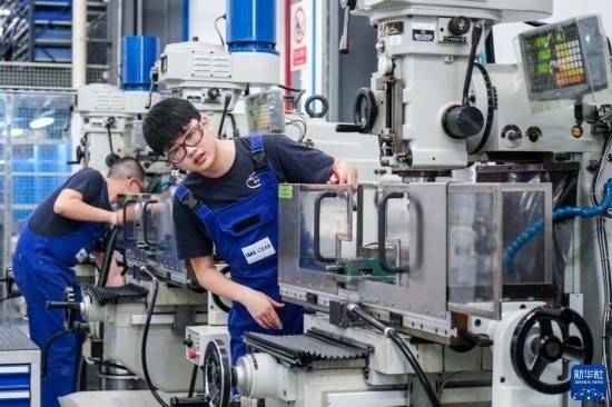 工人在位于太倉市高新區(qū)的億邁齒輪(太倉)有限公司生產(chǎn)車間內(nèi)進行加工作業(yè)(3月14日攝)。