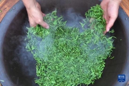 3月20日,在湖南衡陽常寧市塔山瑤族鄉(xiāng),茶農(nóng)在炒茶。