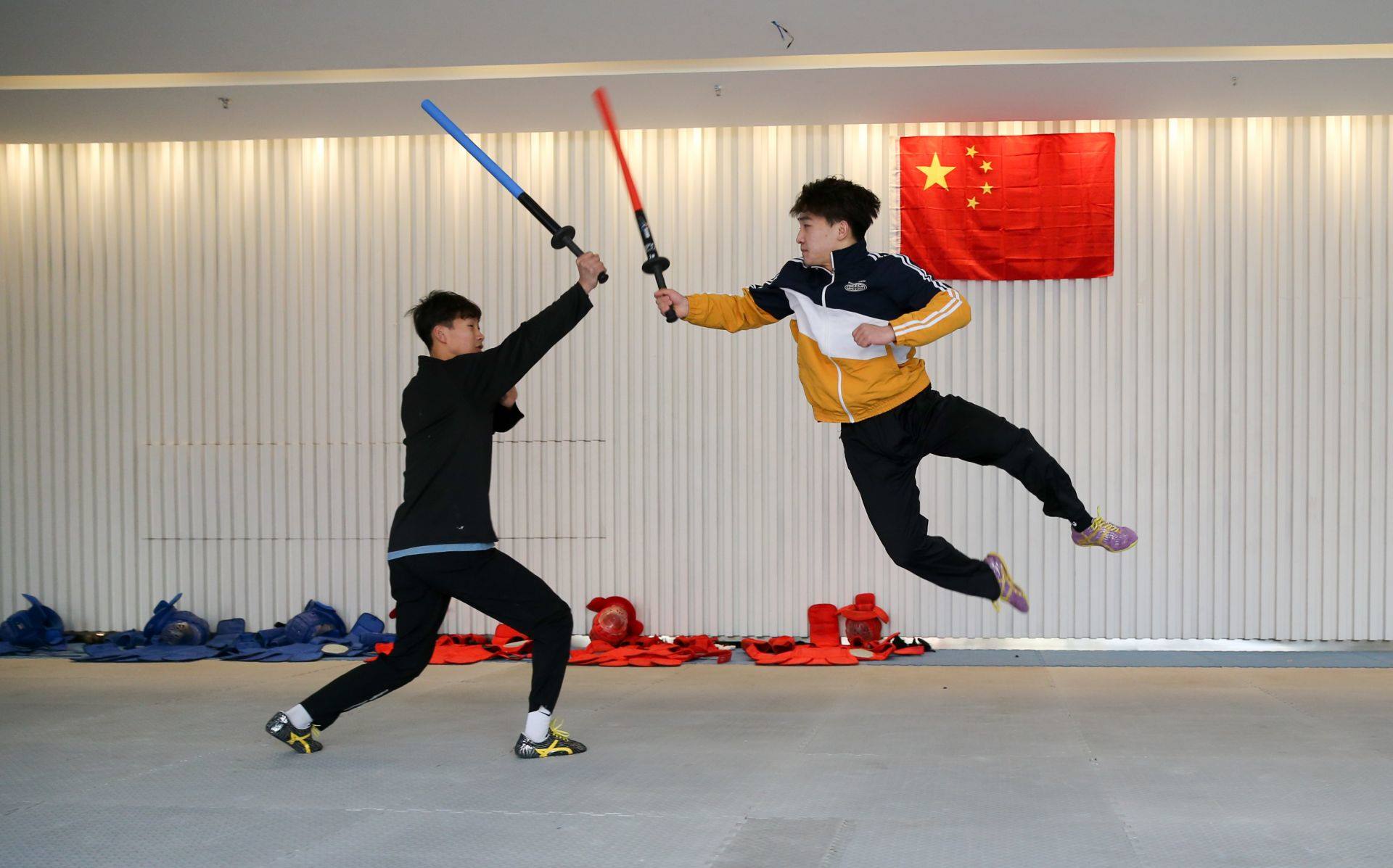 隊(duì)員手持一柄海綿包裹的短劍,時(shí)而閃躲騰挪,時(shí)而沖刺進(jìn)攻,動(dòng)作行云流水。一招一式間盡顯力量和速度之美,相互對(duì)抗擊打時(shí)發(fā)出“啪啪”的聲響更是令人熱血沸騰……如果說(shuō)哪一項(xiàng)運(yùn)動(dòng)能夠滿足人們對(duì)俠客的終極幻想,非武術(shù)兵道莫屬。3月21日,為備戰(zhàn)全國(guó)武術(shù)兵道錦標(biāo)賽,內(nèi)蒙古唯一一支武術(shù)兵道隊(duì)在呼和浩特市體育運(yùn)動(dòng)學(xué)校展開訓(xùn)練。
