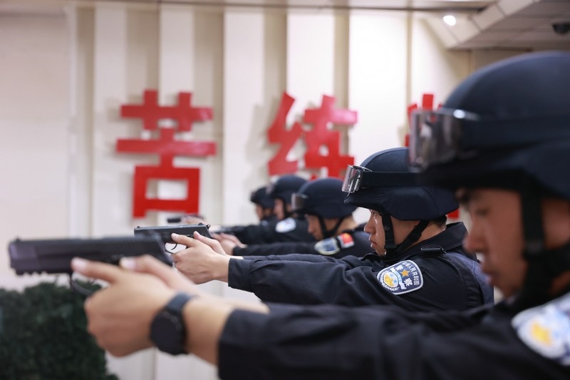 “驗(yàn)槍,上彈匣,開始射擊!”隨著現(xiàn)場(chǎng)指揮員的口令,密集的槍聲響徹地下靶場(chǎng)。對(duì)于特警而言,精度射擊是日常基礎(chǔ)訓(xùn)練,相比其他警種,他們需要完成兩種以上武器的精度射擊訓(xùn)練,在技巧和精準(zhǔn)層面要求更高。同時(shí),本次集訓(xùn)更增加了戰(zhàn)術(shù)攻防應(yīng)用射擊,攻防雙方以小組作戰(zhàn)的形式,在模擬場(chǎng)景中圍繞劫持人質(zhì)、武裝對(duì)抗等警情開展對(duì)抗。小組成員們密切配合,采取戰(zhàn)術(shù)動(dòng)作對(duì)房間內(nèi)的嫌疑人進(jìn)行武力攻擊,對(duì)發(fā)現(xiàn)的人質(zhì)予以保護(hù),擊斃嫌疑人、解救人質(zhì)。通過(guò)多輪次的攻防互換,特警隊(duì)員們的臨戰(zhàn)心理、戰(zhàn)斗意識(shí)和突擊攻堅(jiān)戰(zhàn)術(shù)有了顯著增強(qiáng),更進(jìn)一步提高了團(tuán)隊(duì)協(xié)作能力。