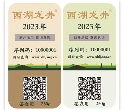 “專用標(biāo)識分為‘證明標(biāo)N(茶農(nóng)用)’和‘證明標(biāo)Q(企業(yè)用)’兩種樣式,相當(dāng)于西湖龍井茶的一張‘身份證’,上面包含了使用主體、年份、規(guī)格、編號、防偽信息等內(nèi)容。”景區(qū)執(zhí)法隊提醒,龍井茶大量上市時期,購買正宗西湖龍井需認準(zhǔn)專用標(biāo)識。