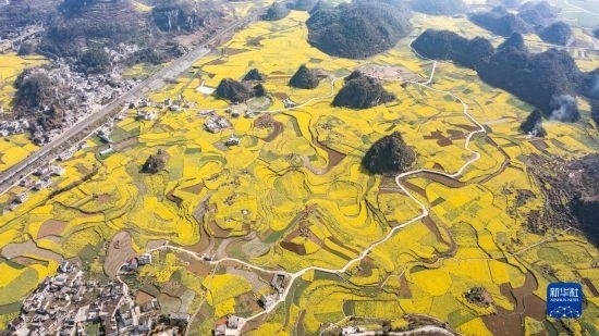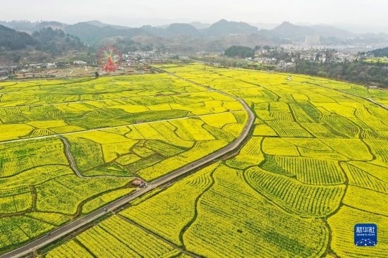 這是3月12日拍攝的貴州省貴定縣盤江鎮(zhèn)“金海雪山”景區(qū)油菜花海(無(wú)人機(jī)照片)。