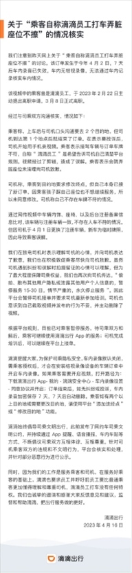 ·滴滴回應前員工打車弄臟座位不擦:已對乘客暫停服務。