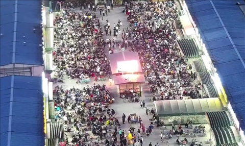 4月14日,夜幕降臨,前來(lái)淄博臨淄大院吃燒烤的人越來(lái)越多。(公共視頻截圖)