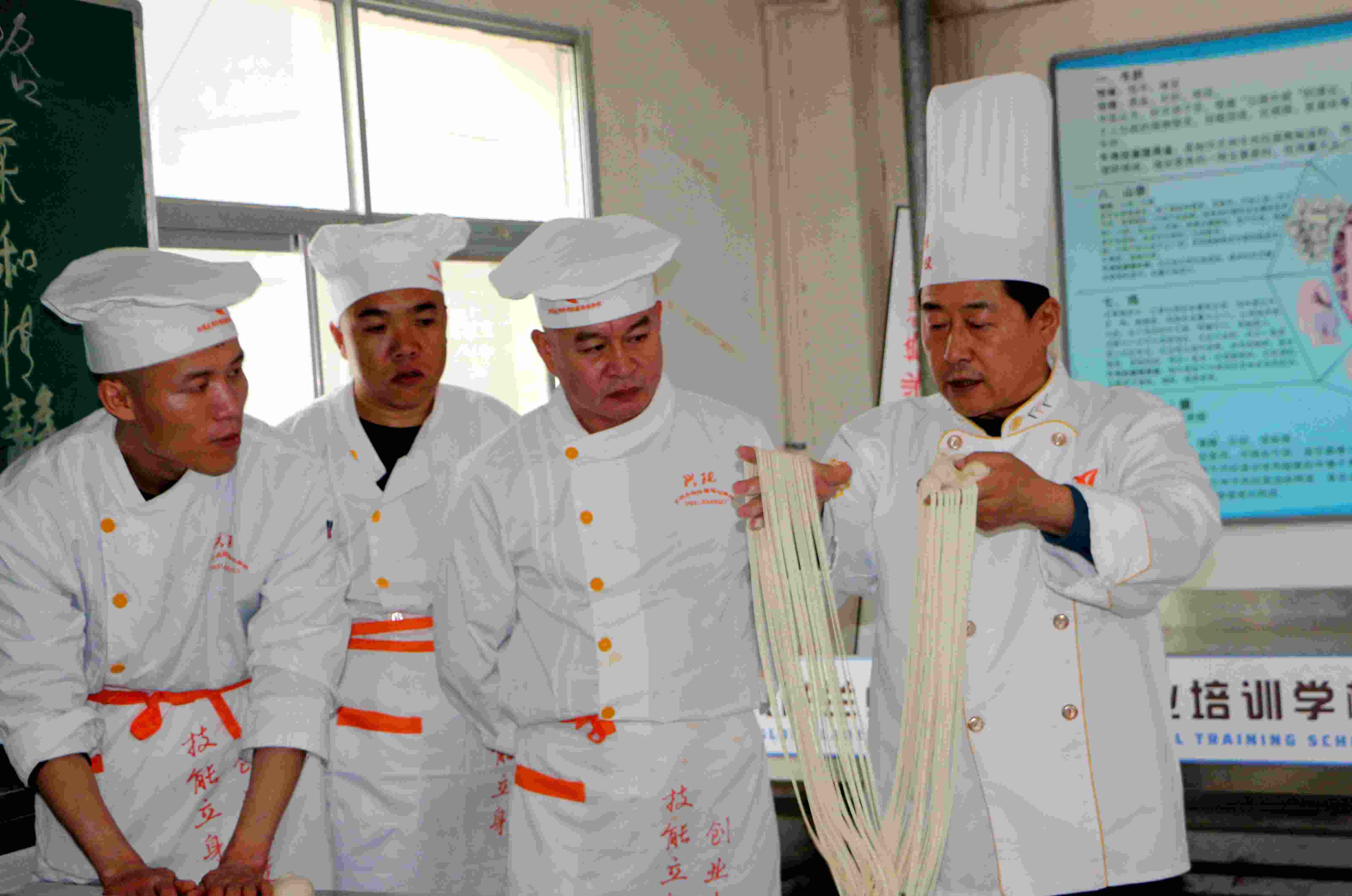 周興國(guó)正在教學(xué)員拉面技巧