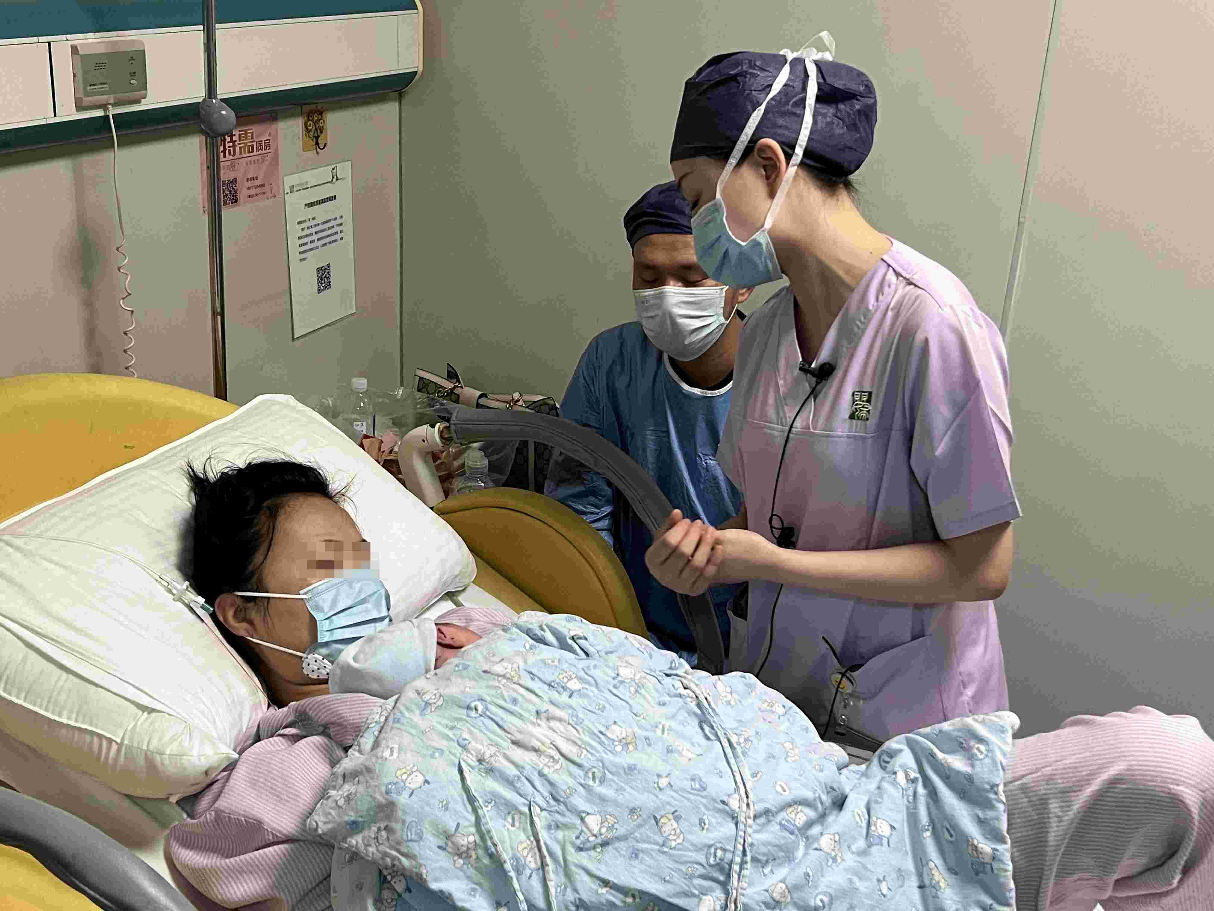 “吸口氣,再來(lái),盡量不要發(fā)聲音,輕輕吐氣,放輕松……”助產(chǎn)士吳靜站在產(chǎn)床旁,為一名宮口全開的孕產(chǎn)婦加油打氣,迎接一個(gè)新生命的到來(lái)。