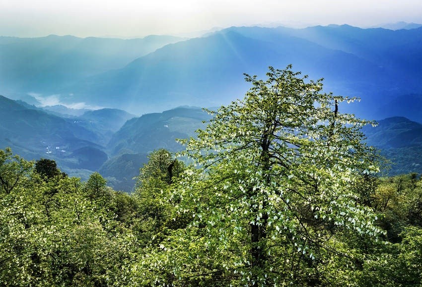 時下,正是珙桐花開的季節(jié),一朵朵珙桐花如白鴿舒展雙翅,在林中翩翩起舞,為美麗的大風頂增添了一絲靈動。