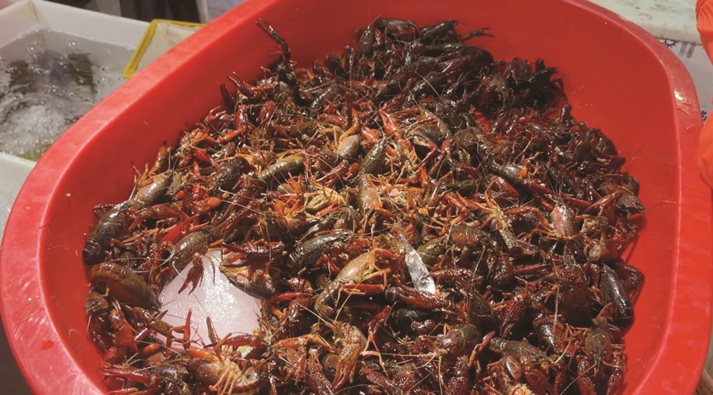 不過,接近農(nóng)貿(mào)市場的關(guān)門時(shí)間,攤子上的小龍蝦還有不少,看起來銷量不佳。記者了解到,很多顧客嫌燒小龍蝦麻煩,索性去餐館直接買做好的熟食小龍蝦,價(jià)格也劃算。