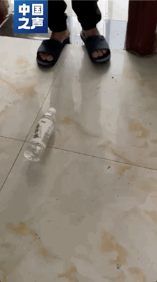 △危樓傾斜嚴(yán)重,放礦泉水會滾動。