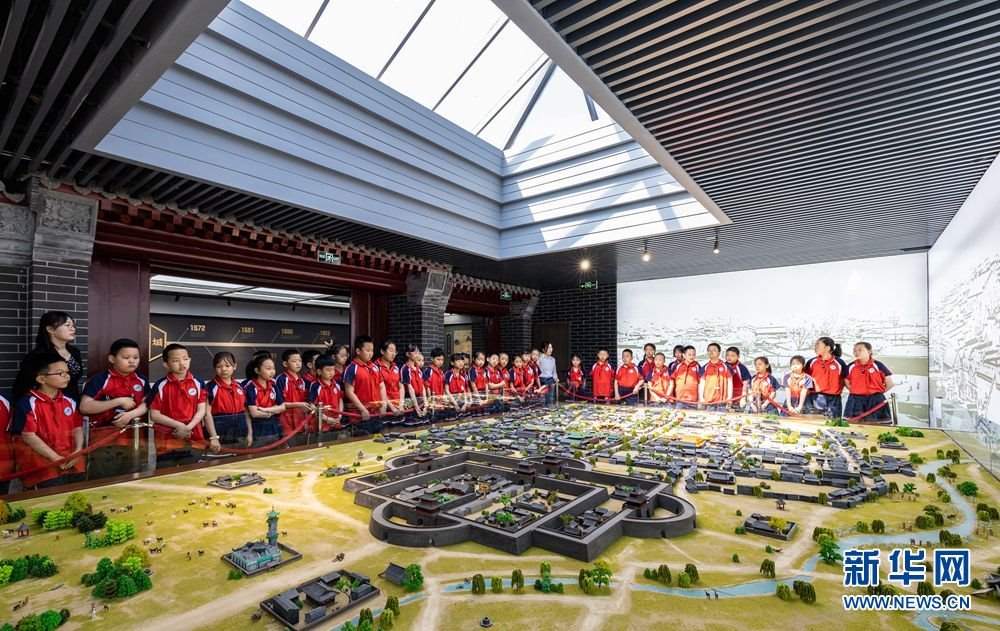 5月17日,呼和浩特市玉泉區(qū)南茶坊小學學生在歸化城展示館參觀歸化城沙盤。