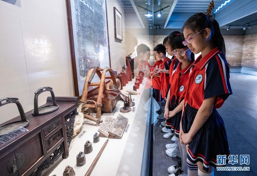 5月17日,呼和浩特市玉泉區(qū)南茶坊小學學生在歸化城展示館參觀老物件。新華網(wǎng)發(fā)(丁根厚攝)