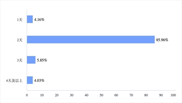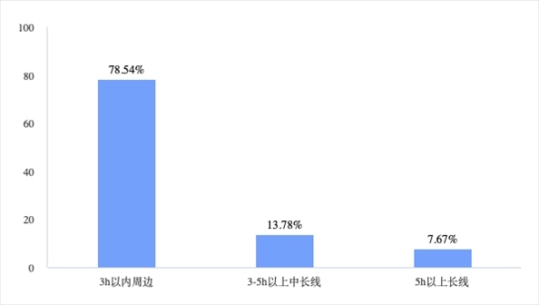 在出游時間和距離方面,短途游是大部分“特種兵旅游”人群的選擇。第一財經(jīng)調查結果顯示,86.09%的受訪者選擇周五晚上出發(fā),78.54%的受訪者選擇3小時路程的周邊游目的地,85.96%的受訪者選擇2天游程時間。