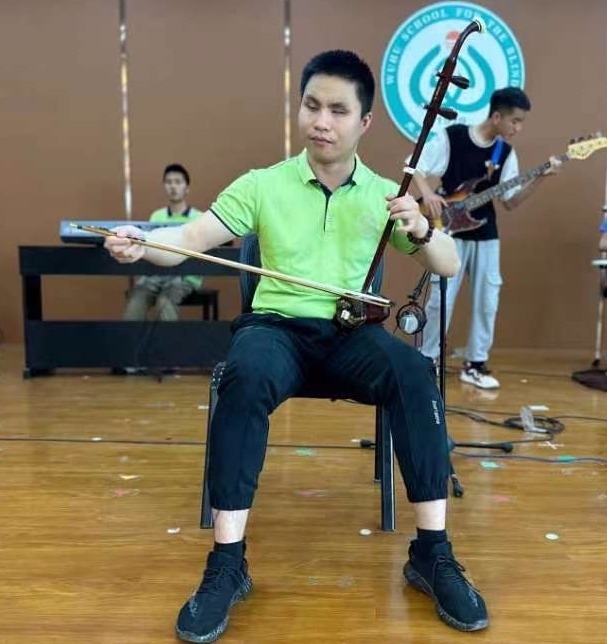 2021年,先天性失明的毛歡笑來到蕪湖市盲人學(xué)校后,沒有錯(cuò)過黑眼睛樂隊(duì)在校園里的任何一次演出。