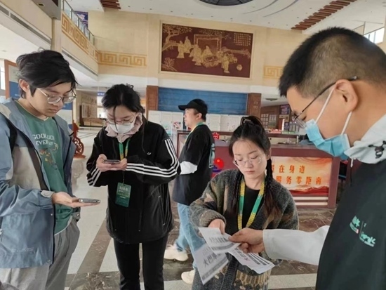 在高鐵曲阜東站,志愿者幫助樂迷了解音樂節(jié)接駁車行駛路線及乘坐流程。徐晨光/攝