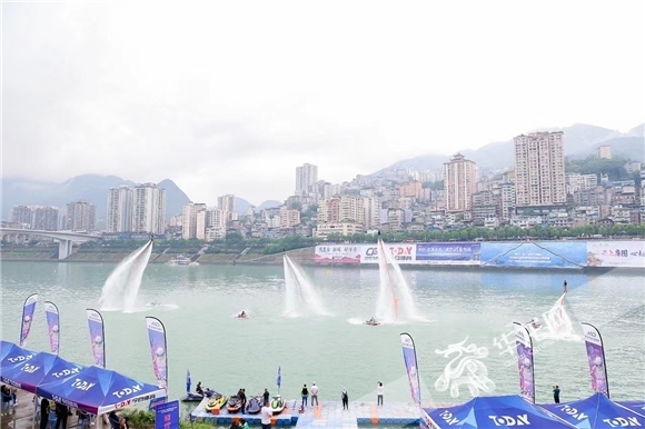 △水上飛人表演贏得現(xiàn)場(chǎng)陣陣歡呼。華龍網(wǎng)-新重慶客戶端 黃歡 攝
