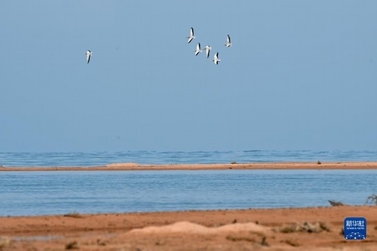 一群斑頭雁在阿爾金山國家級自然保護(hù)區(qū)飛翔(5月23日攝)。