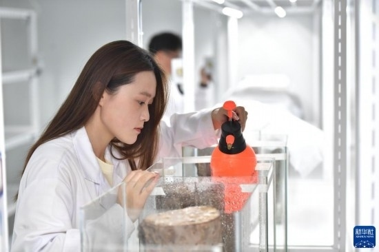 5月31日,在沈陽(yáng)工學(xué)院遼寧省危險(xiǎn)性林業(yè)有害生物防控重點(diǎn)實(shí)驗(yàn)室,生命工程學(xué)院同學(xué)進(jìn)行接種與栽培實(shí)驗(yàn)。