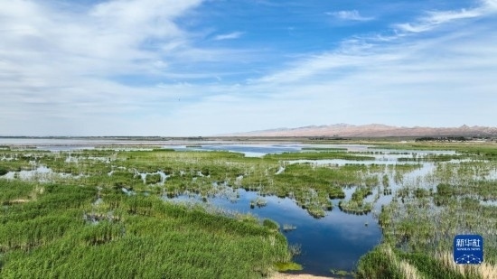 夏日里,位于內(nèi)蒙古巴彥淖爾市烏拉特前旗的烏梁素海波光粼粼,風(fēng)景如畫(huà)。