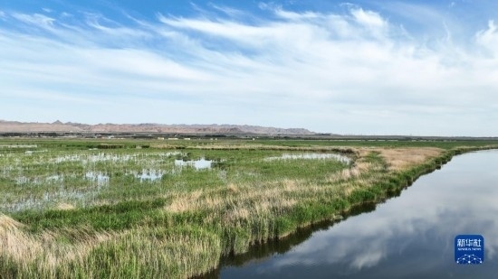 這是6月4日拍攝的位于內(nèi)蒙古巴彥淖爾市烏拉特前旗的烏梁素海(無(wú)人機(jī)照片)。
