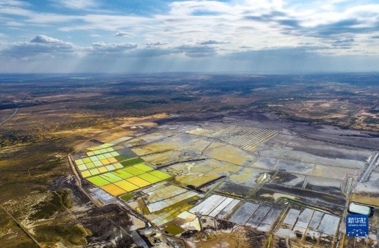 6月5日拍攝的北大池鹽湖景色(無人機(jī)照片)。