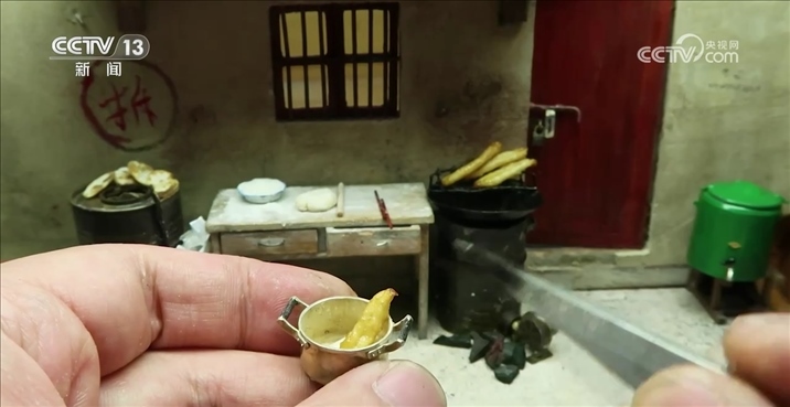 趙培藝:有一位網(wǎng)友外婆腿腳不好,沒有辦法回老家。然后他跟我說,能不能給他復原一個小的,給她放在床頭上讓她看著,大概拍了二十幾張照片,然后測量數(shù)值是測了大概三四次,他原本是什么材質(zhì),我就盡量去用什么材質(zhì),例如小的瓷磚,我都是去廠里訂的小陶瓷片,像地板之類的,我都是用手工燒的小紅磚去做。想家里了,一歪頭就能看到。