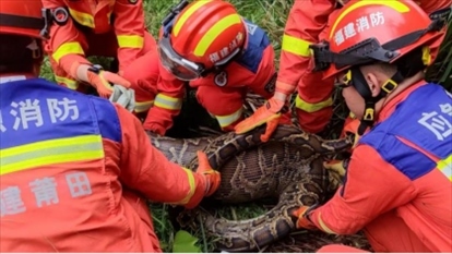·莆田一農(nóng)戶家每月少一只羊,家附近發(fā)現(xiàn)巨蟒,消防抓獲時蟒腹中尚有只小羊。